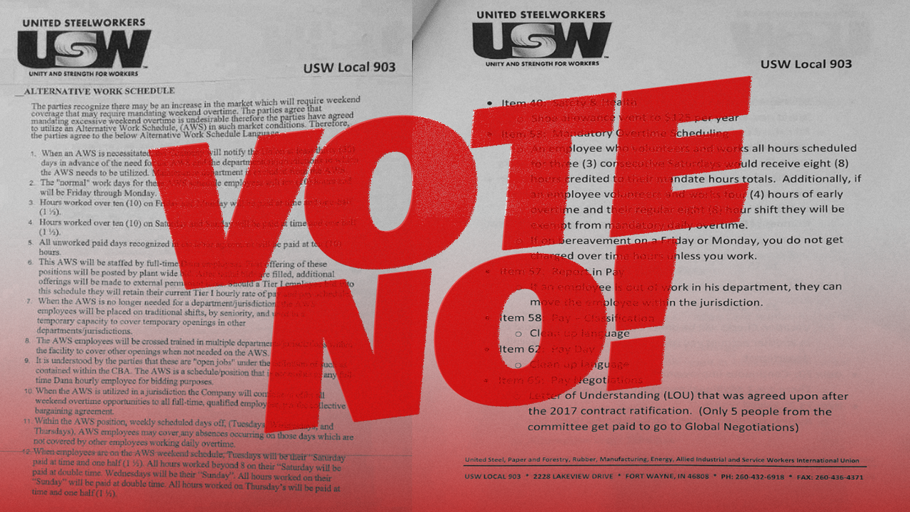 Geleakte Details des geplanten Tarifvertrags machen deutlich, dass sich Dana-Arbeiter für einen harten Kampf um Löhne, Arbeitszeiten, Sicherheit und vieles mehr wappnen müssen. Wir rufen zu einem entschiedenen „Nein“ zu diesem miserablen Tarifvertrag auf.