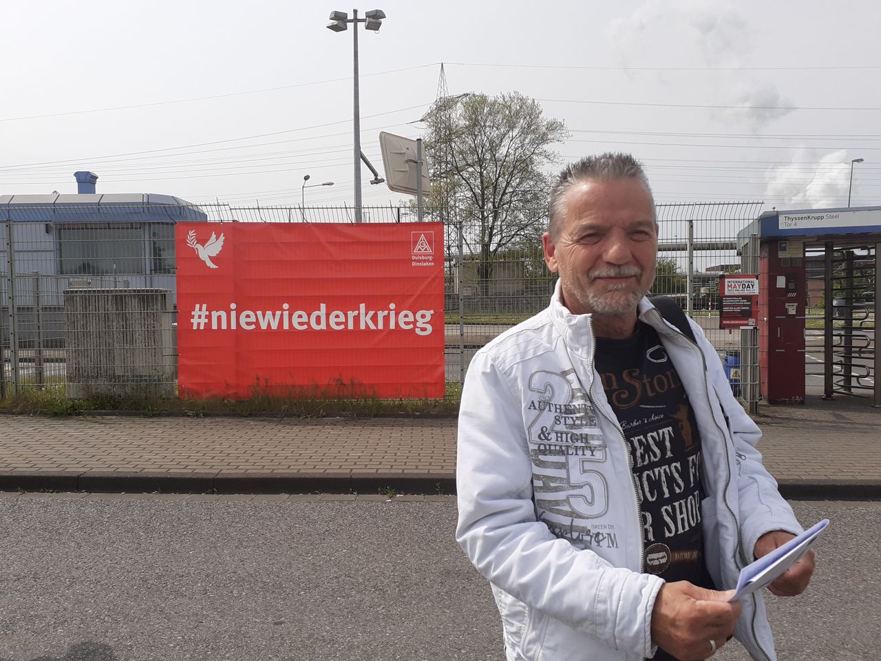 Einer von ihnen ist Egon. Er unterstützt ausdrücklich den Vorschlag, Arbeiter in Russland, der Ukraine, Deutschland und weltweit gegen den Krieg zu vereinen. Wie er sagt, unterstützt er weder die USA noch Russland im Krieg. „Und was die Bundesregierung jetzt macht, Waffen an die Ukraine liefern, ist auch schlecht! Und wer zahlt im Endeffekt die Waffen? Die, die hier gerade alle durchs Tor gehen.“
