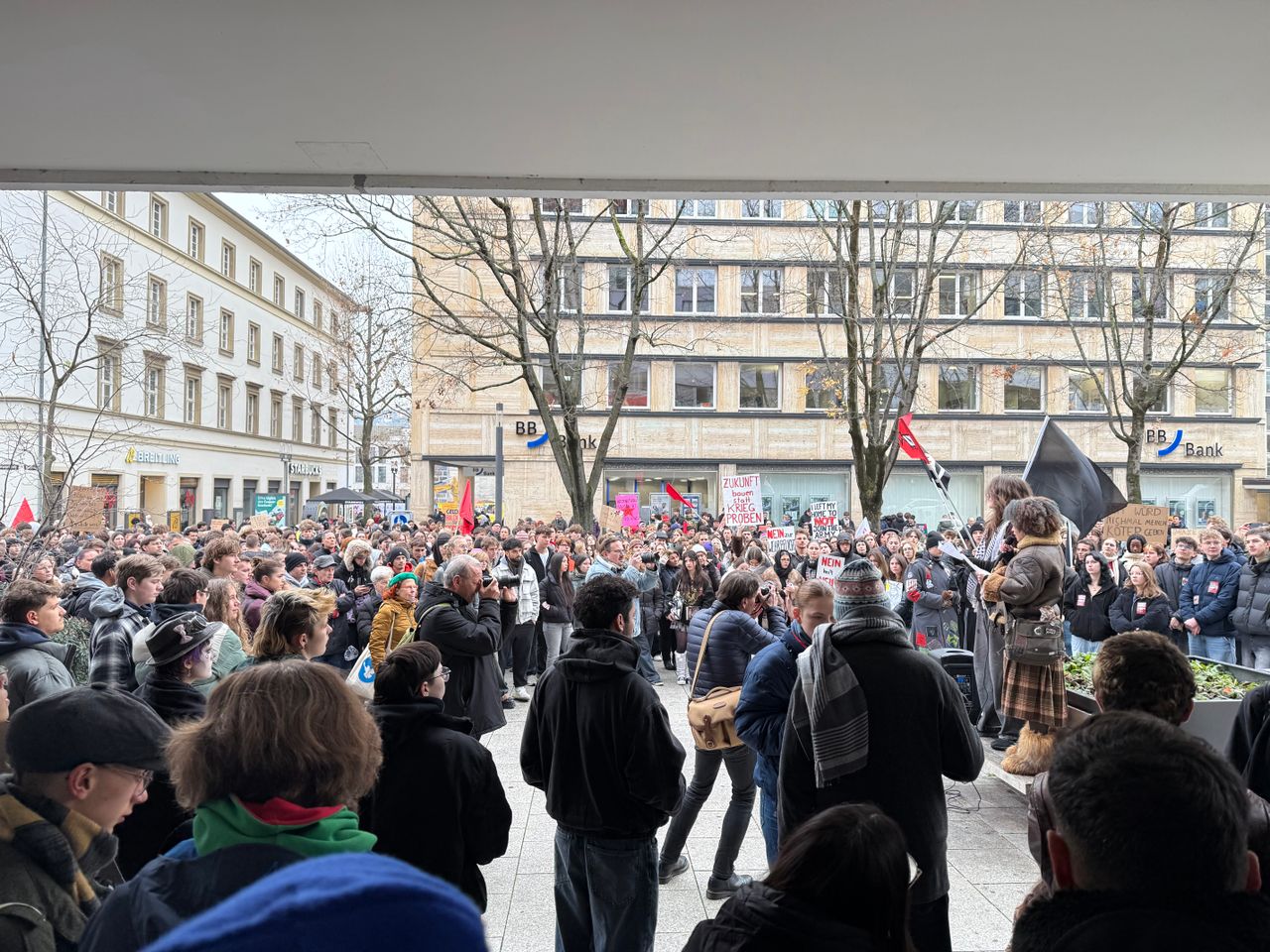 In Nürnberg protestierten über 400 Schülerinnen und Schüler gegen die geplante Wiedereinführung der Wehrpflicht. Mit selbstgestalteten Plakaten mit Slogans wie „Wir wollen in Frieden leben und nicht im Kriege sterben!“ oder „Wir sollen sterben für eure Kapitalinteressen? Widersetzen“ verliehen sie der weitverbreiteten Opposition gegen Krieg Ausdruck. Der Protest wurde auch von vielen besorgten Eltern unterstützt, die Plakate hochhielten mit „Meine Kinder geb ich nicht“.