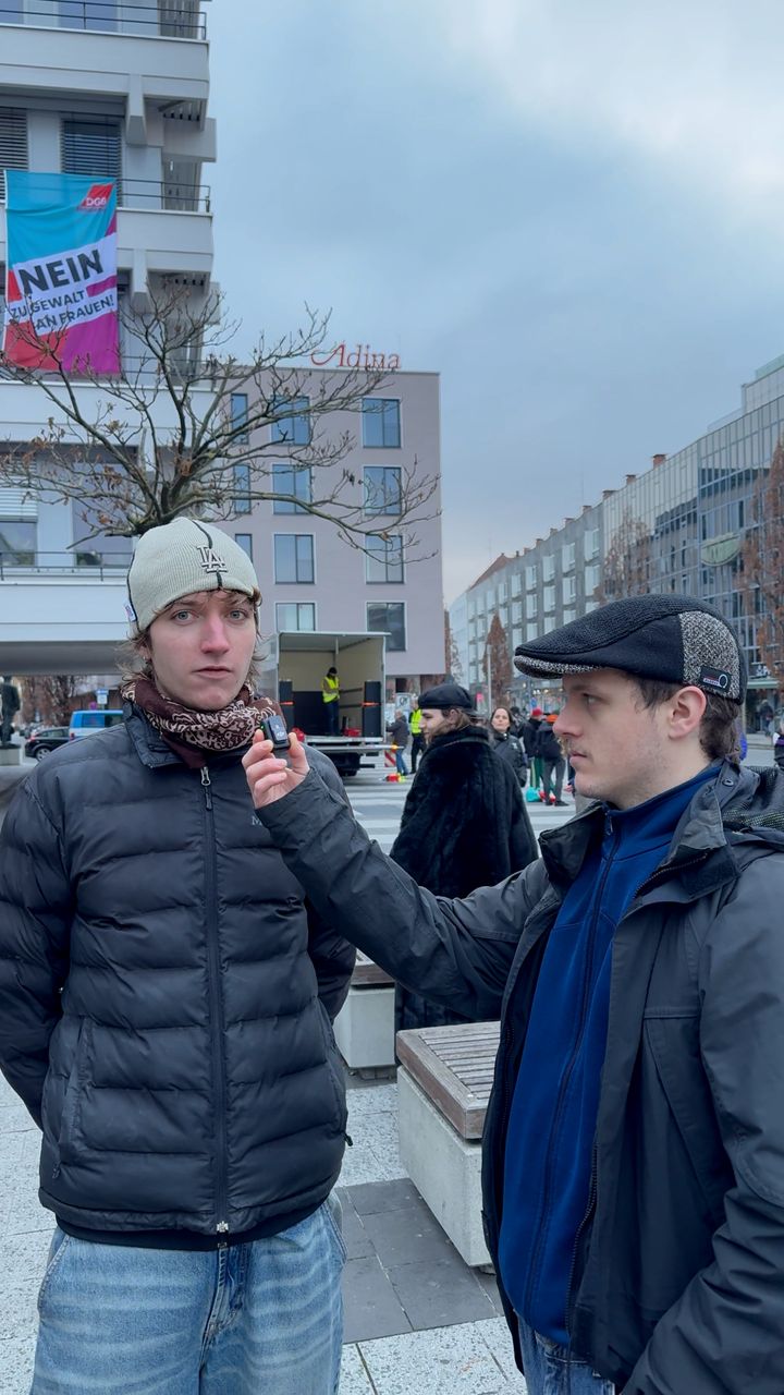Leo und Julius, beide 17, betonten, dass die Aufrüstung finanziert werde, indem in den Sozialbereichen gekürzt wird. „Wir sind heute hier, um gegen die Wehrpflicht zu demonstrieren, aber auch, damit die Stimme der Jugend gehört wird. Überall fehlt das Geld in den Schulen, ein Führerschein kostet mittlerweile 4000 Euro, man muss das Geld für die Menschen investieren nicht für den Krieg“, so die beiden Schüler.