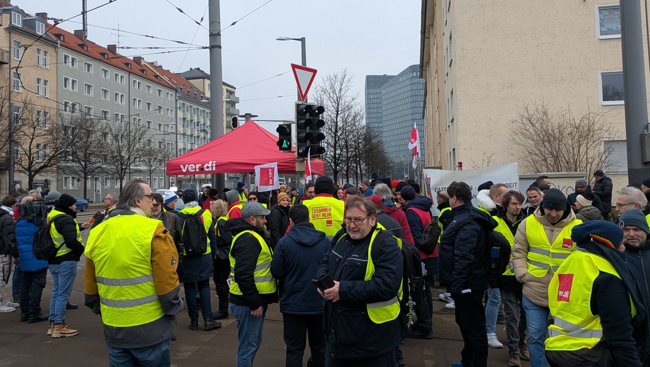 „Ja, das sind immer zwei verschiedenen Kassen“, sagte ein Nahverkehrskollege dazu: „In der Militärkasse ist immer Geld da.“ Und wenn es darum gehe, die Wirtschaft in Kriegswirtschaft umzuwandeln und den Widerstand der Arbeiterklasse in Schach zu halten, sei auf die Gewerkschaften Verlass: „Dann fallen sie uns in den Rücken.“