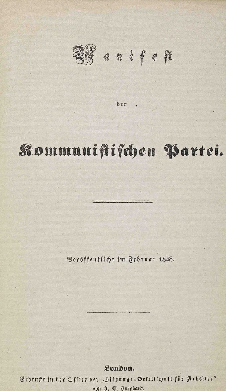 Das Manifest wurde von Marx und Engels in den Monaten vor der Revolutionswelle von 1848 als Programm für den Bund der Kommunisten verfasst. Es ist die erste grundlegende Erklärung über die Methoden und Ziele der kommunistischen Bewegung.