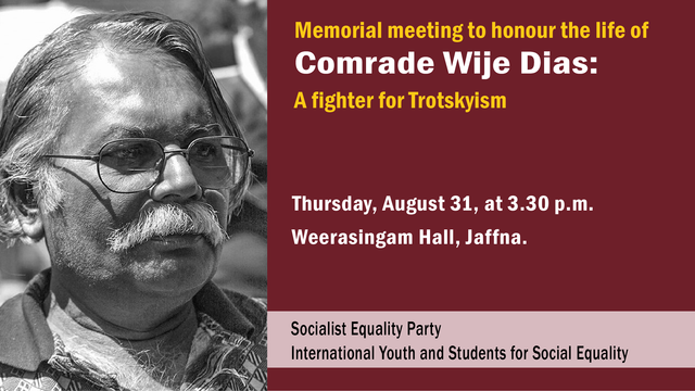 Comrade Wije Dias, the longtime general secretary of the Socialist Equality Party (Sri Lanka), died in Colombo on July 27, 2022. This exhibit includes two tributes to Wije by WSWS International Editorial Board Chairman David North as well as a selection of Wije’s most significant articles and speeches.