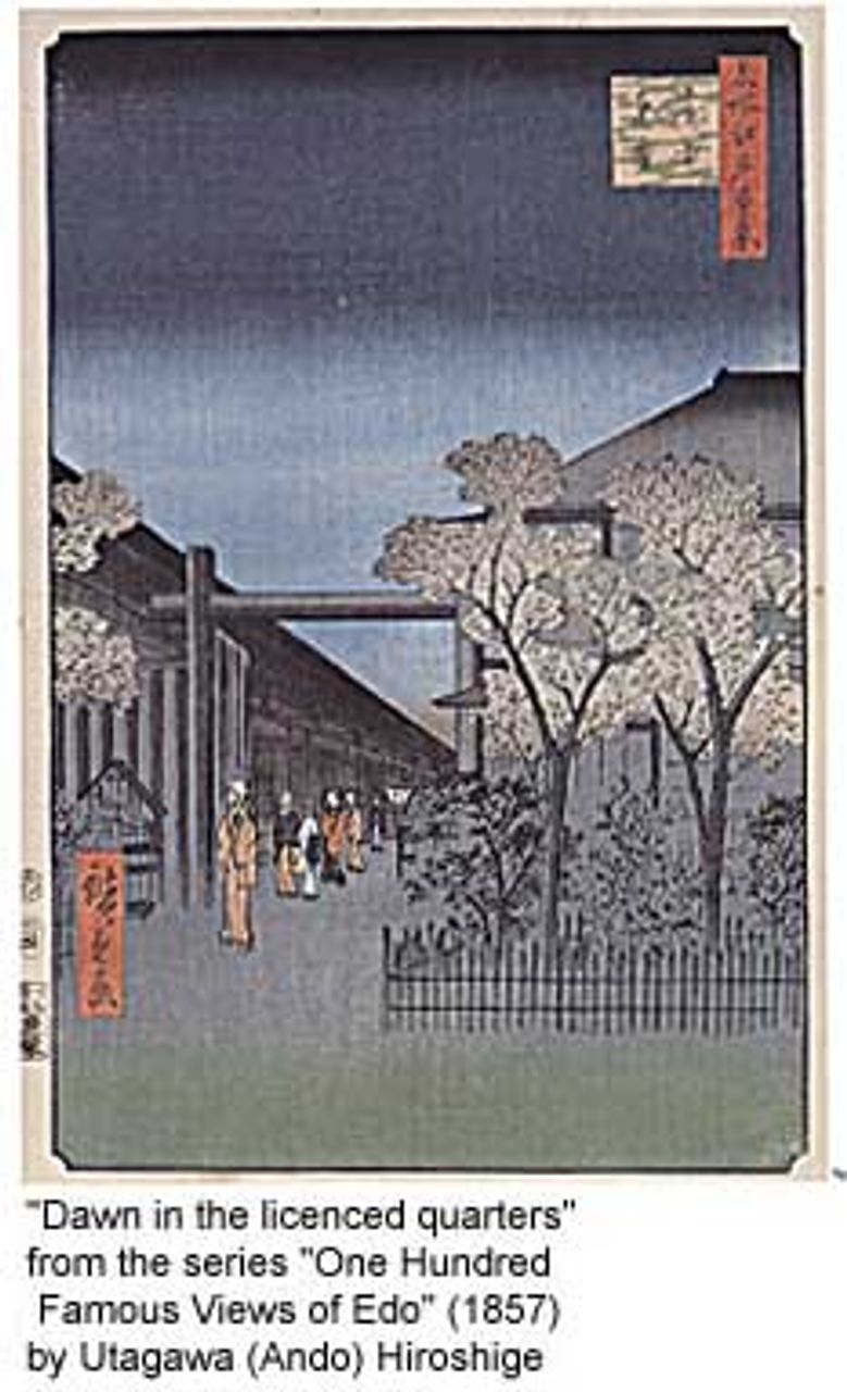 The entertainment districts were the only officially condoned release from the highly formal relations of everyday life in Tokugawa Japan, particularly as there were no mixed social functions and marriages were arranged with an eye to social status and advancement.