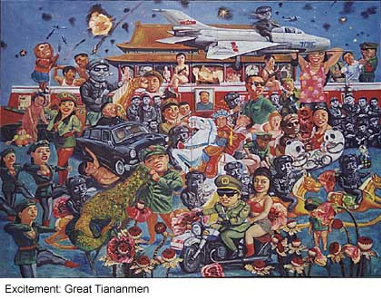 Jian, who now resides in Australia, participated in the Tiananmen Square protests--the mass movement of students that erupted against the Chinese Maoist bureaucracy in 1989. Jian's paintings angrily satirise the Maoist regime but his work raises questions of a more universal character, in particular, how governments and the media manipulate public opinion; and the social consequences of societies whose only moral value is the pursuit of money.