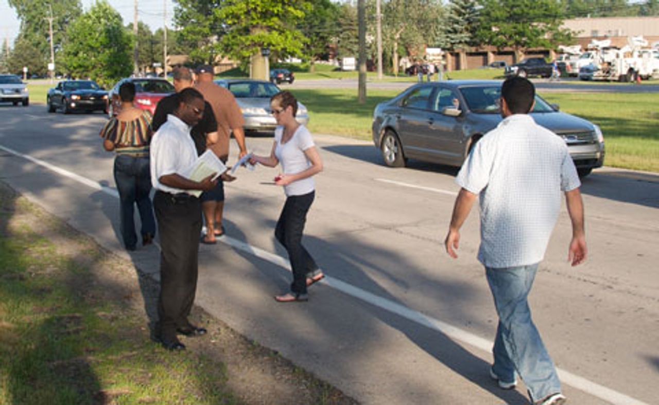 CAUS supporters distribute an appeal to DTE workers before the meetingBefore Tuesday’s meetings, supporters of the Socialist Equality Party and the Committee Against Utility Shutoffs (CAUS) distributed hundreds of leaflets to DTE workers. (See “Appeal to DTE workers”)