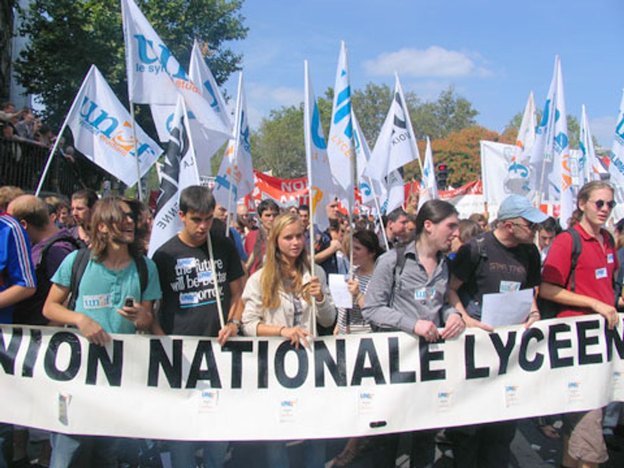 The National Union of High School StudentsSome 100,000 people joined demonstrations Saturday in 140 French towns to protest against President Nicolas Sarkozy’s anti-immigrant and repressive policies and his crackdown on Roma communities. Minister of the Interior Brice Hortefeux issued a statement in response, declaring, “I will press on with my determined action to drive back all forms of delinquency and defend victims’ rights, and I will do this without stigmatising any community whatsoever.”