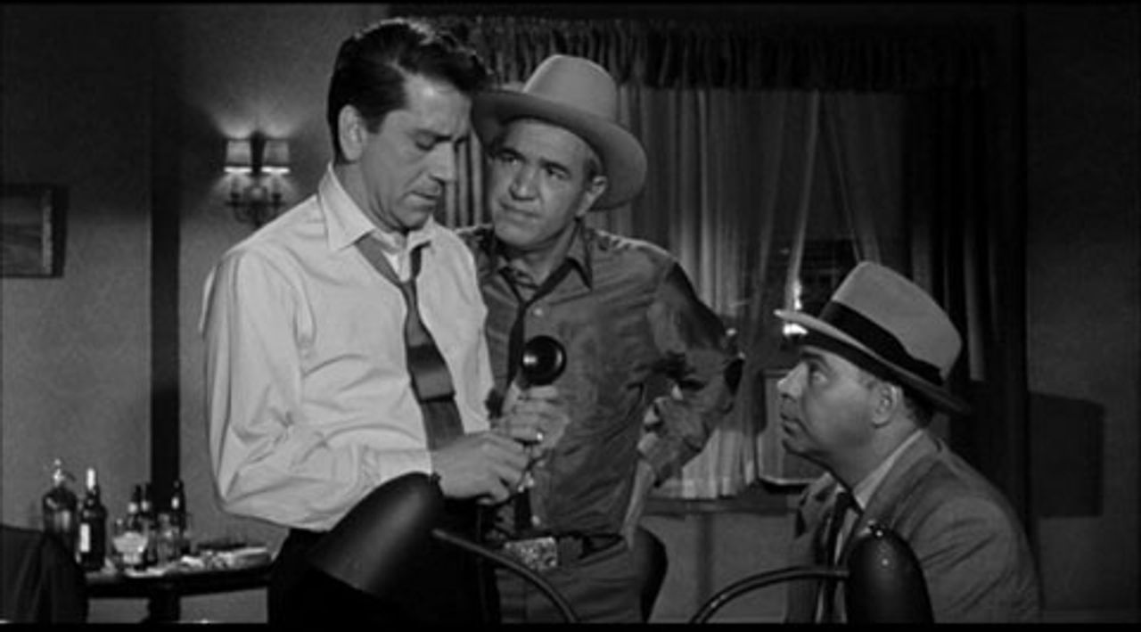A series of flashbacks, intercut with action scenes set in the present, reveal the reason for the pair’s intense interest in Vanning. After stealing $350,000 from a bank, the two thieves wreck their car in Wyoming and encounter Vanning and his friend Dr. Edward Gurston (Frank Albertson), there on a hunting trip. Red kills Dr. Gurston and thinks he has slain Vanning, but mistakenly picks up the doctor’s medical bag, instead of the one holding the money.