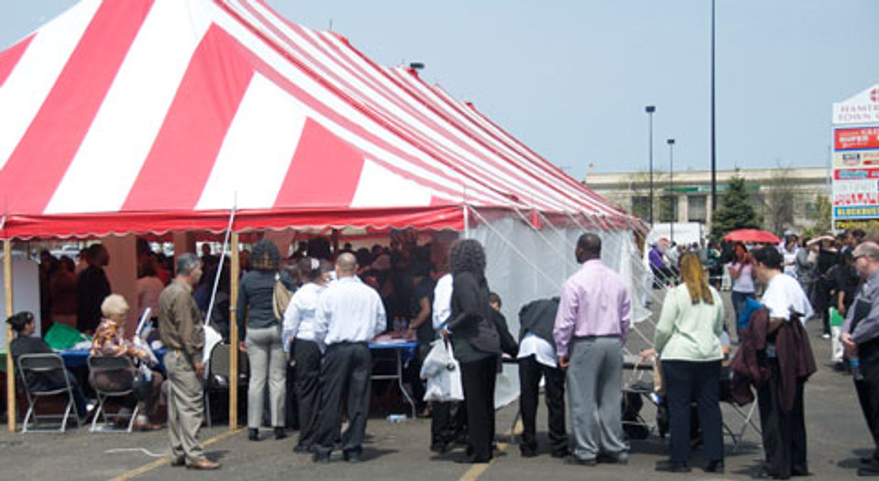 The tent that housed the jobs eventThere were about 40 employers participating. Low wage employers including Walmart and McDonald’s had tables, along with several local banks and hospitals. Military and police recruiters were also on hand.