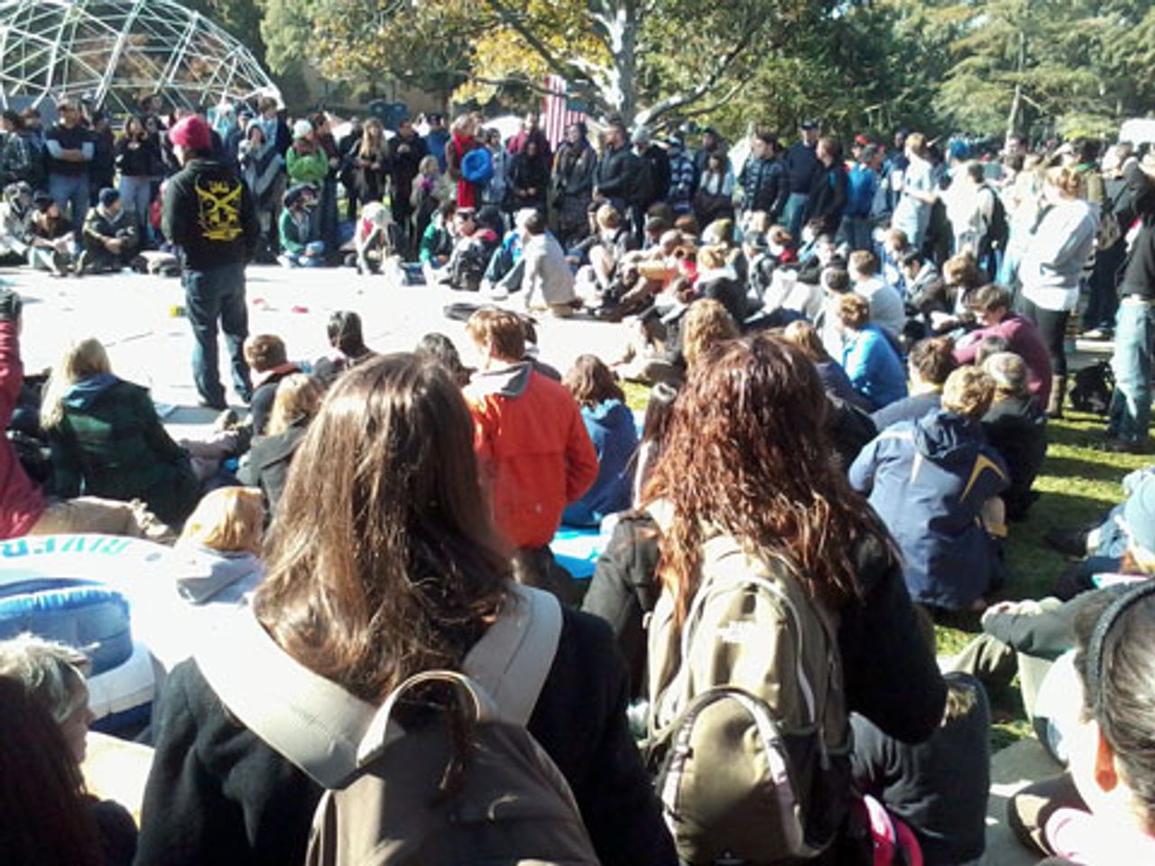 Students demonstrate on the quad at UC DavisOver 5,000 students gathered on the University of California, Davis quad on Monday to protest police brutality, social inequality, and tuition hikes. During a general assembly in the afternoon, the students voted 99.5 percent in favor of a university strike, to be held on November 28.