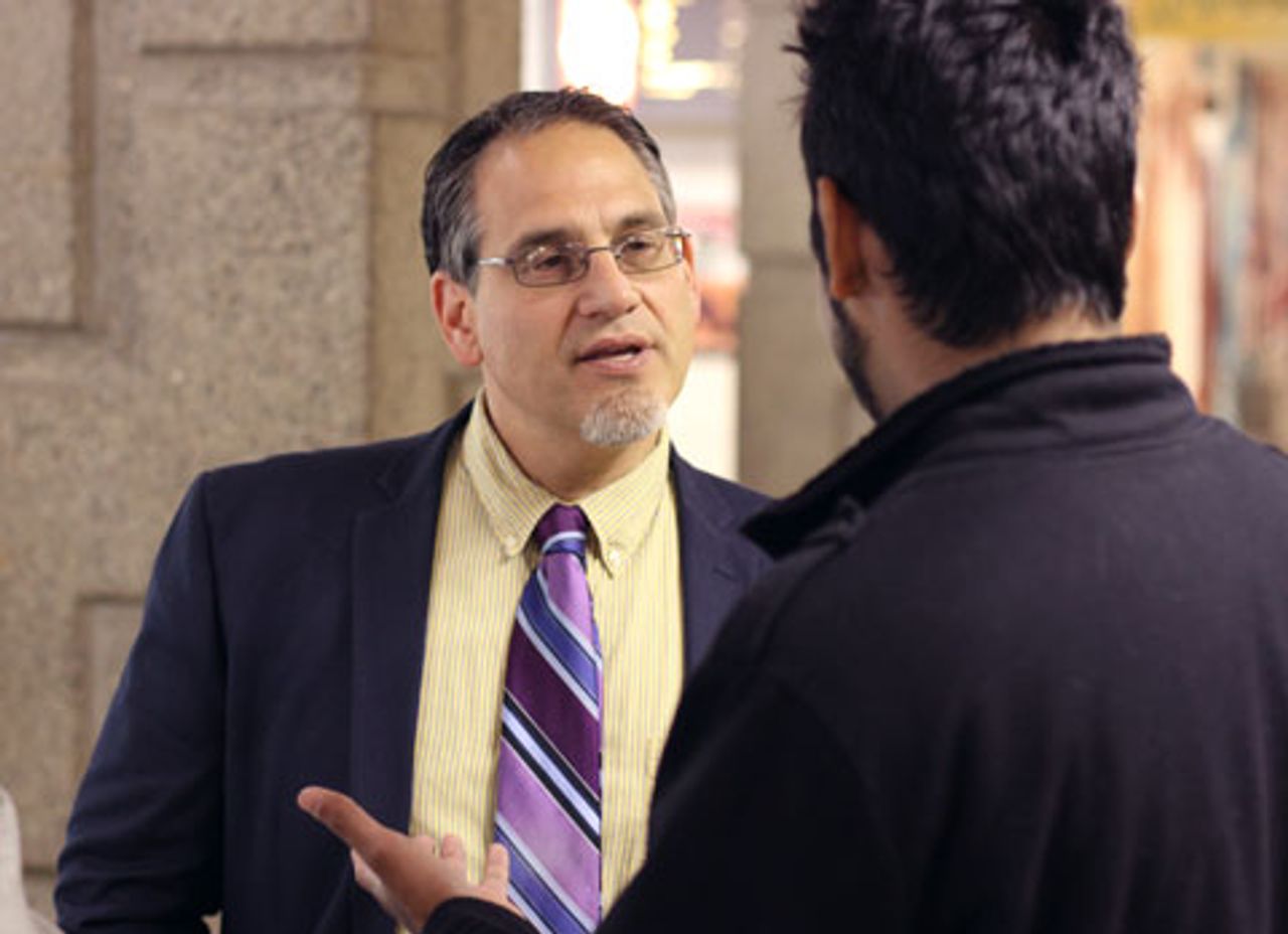 Jerry White discussing with a studentWhite spoke to students and campus workers on the need to build an independent party of the working class as an alternative to both capitalist parties. He introduced himself to passersby as the socialist candidate for US president and warned that Obama’s putting forward of Detroit as a model for America meant deeper attacks on workers and youth.