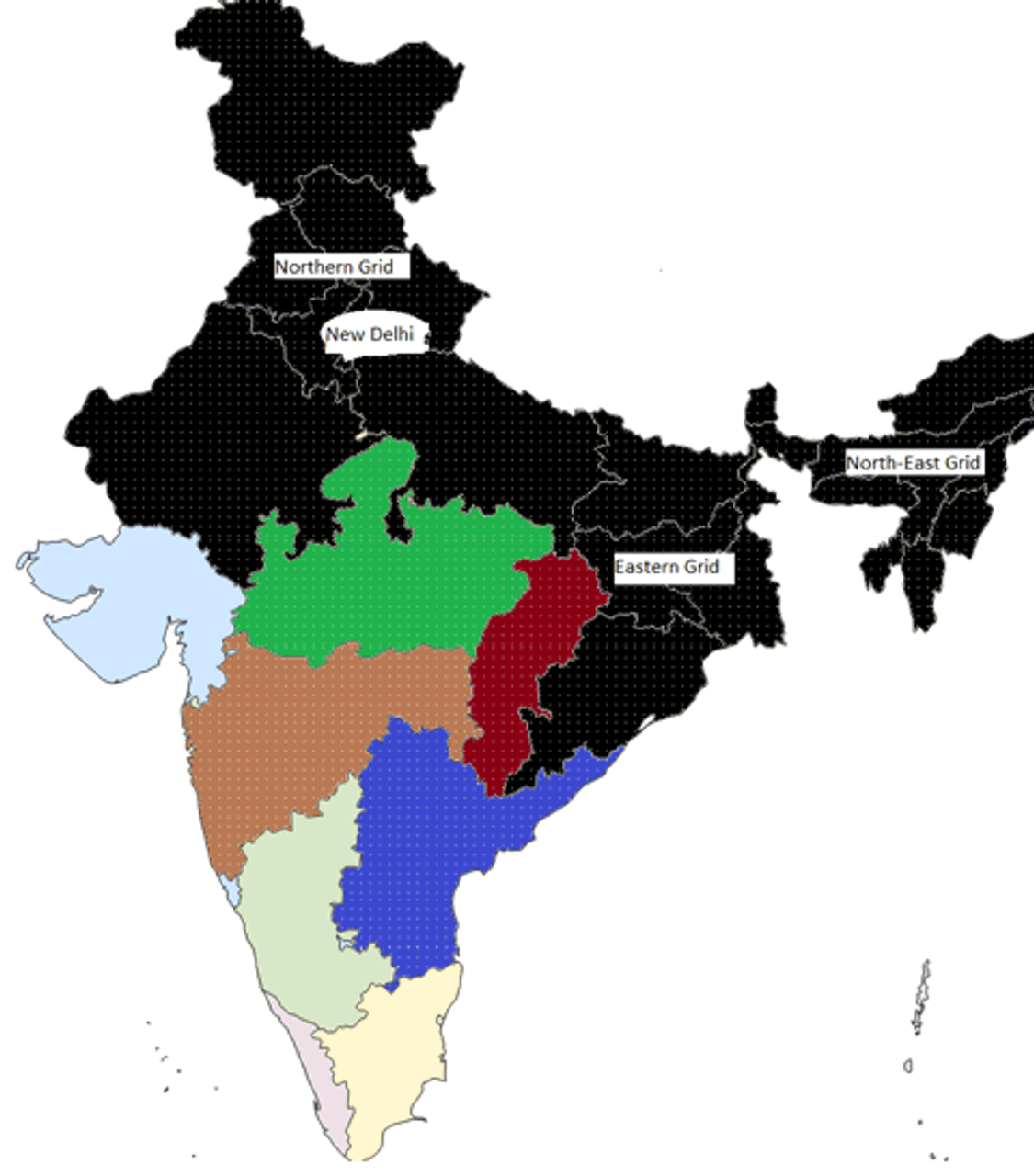 The areas in black—21 states and Union territories—were all affected by Tuesday's mega-blackout.Tuesday’s power failure interrupted some three hundred trains, leaving passengers stranded often in the middle of nowhere in sweltering summer heat. The subway system in Delhi was also paralyzed for hours. With traffic lights off-line, cities across northern India suffered hours of traffic chaos.