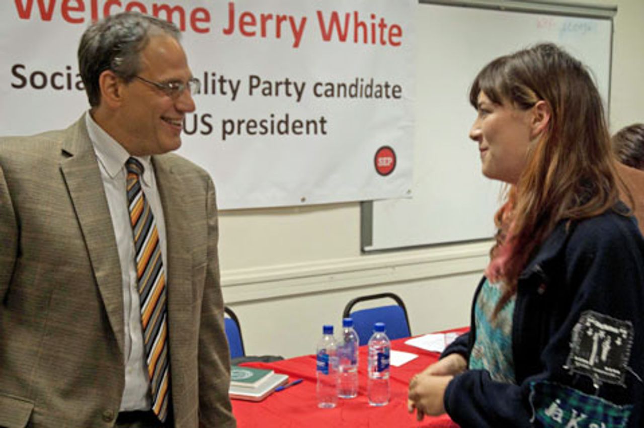 US Socialist Equality Party presidential candidate Jerry White spoke at a well-attended public meeting at the University of London Union on Thursday. White is in England on the second leg of his international tour, having held a series of meetings in Sri Lanka the previous week. He will speak in Berlin on Saturday.