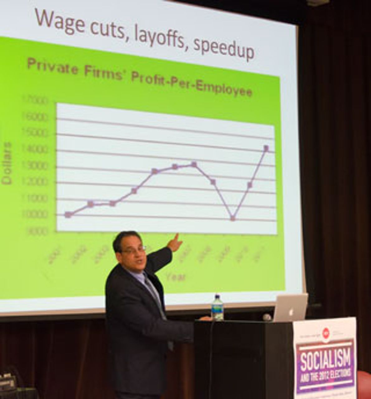 Joseph Kishore gave the opening report in which he introduced the conference resolution. He began by pointing out that the 2012 presidential elections were taking place under conditions of the worst economic crisis since the depression of the 1930s. He noted that the situation facing working people in the United States and Europe belied claims of economic recovery, with working people facing a historic retrogression in their standards of living.