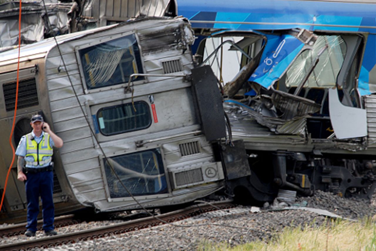 Just before noon last Sunday, a truck laden with vegetables collided with a metropolitan passenger train carrying 30 passengers at a level crossing in the outer south-eastern Melbourne suburb of Dandenong South. The first two carriages jack-knifed after they derailed and skidded for 200 metres along the ground.