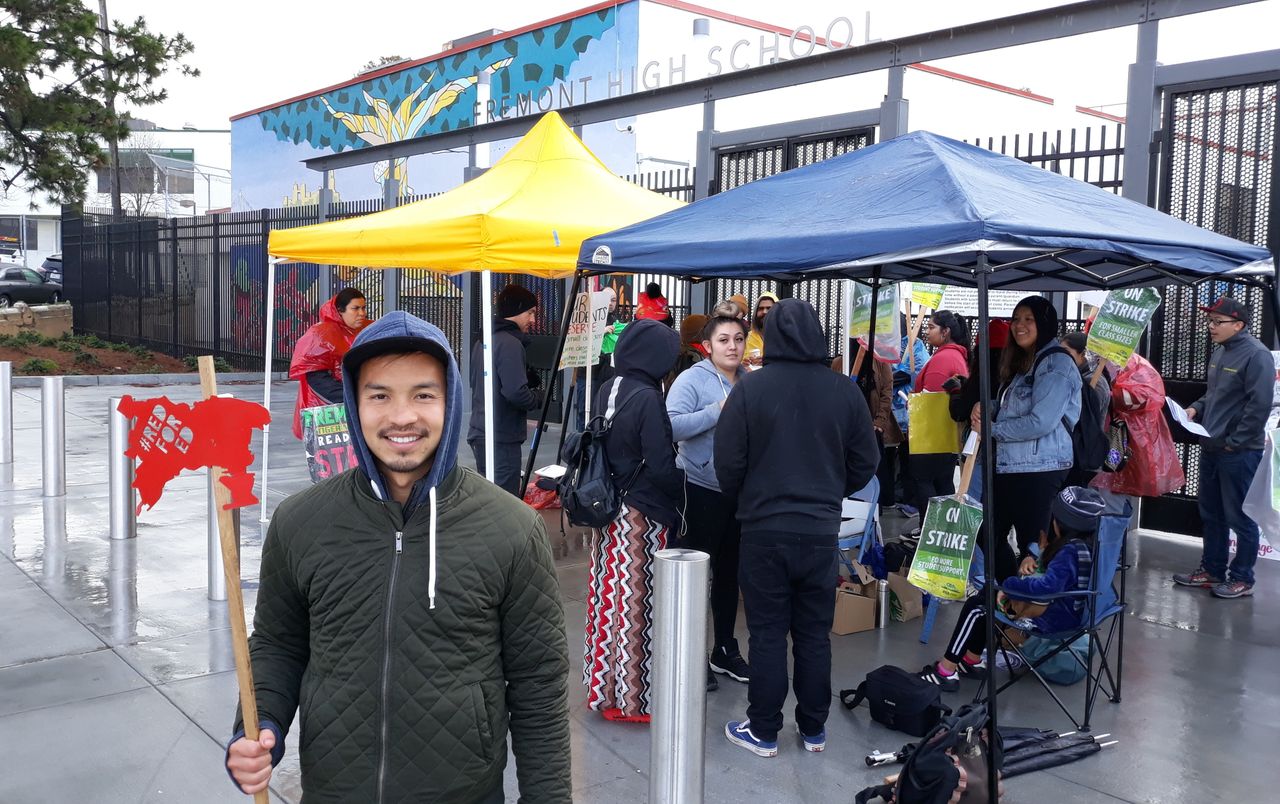 Phong, an Oakland native, who has taught in the Oakland Unified School District (OUSD) for nearly a decade, told reporters, “My job as a teacher pays me just enough to pay the rent, not including my car or bills or anything else, which is insane. I work two other jobs, including teaching classes at UC Davis (University of California-Davis), and work about 60 hours each week. No one should have to do that. The only thing that drives me is I love this environment and this group of students.”