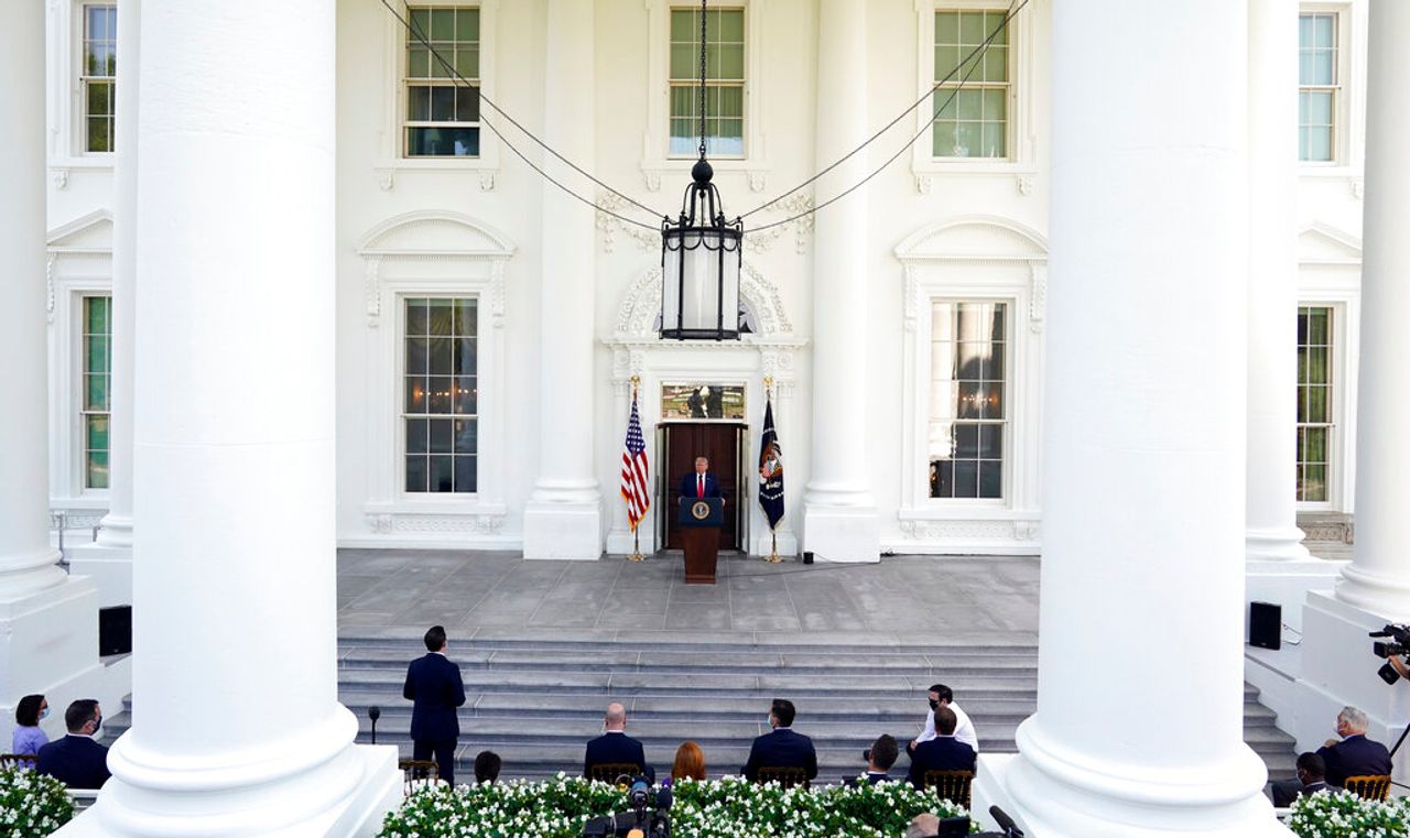 In taking questions from the media, Trump vilified reporters who were wearing masks, claiming they could not be understood. A reporter from his favored ultraright outlet, One America News, asked a question about the popular protests against police violence, framed in such a way that Trump was invited to deliver a law-and-order rant. He duly obliged.