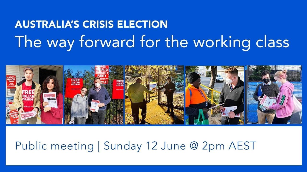 The May 21 election revealed an historic crisis of Australia’s two-party set up. The Socialist Equality Party (SEP) will be discussing the election outcome and the way forward for the working class at an online public meeting Sunday, June 12 at 2 p.m. (AEST). Register now to attend this important meeting.