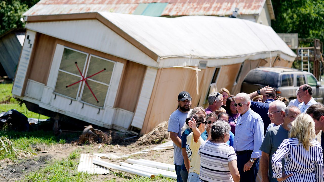 President Biden visited Kentucky this week after devastating floods destroyed several communities last month. The floods were the worst in Kentucky’s history, with 8-10.5 inches of rain falling in just 48 hours. At least 37 people were killed and additional flooding may occur as thunderstorms develop this week.