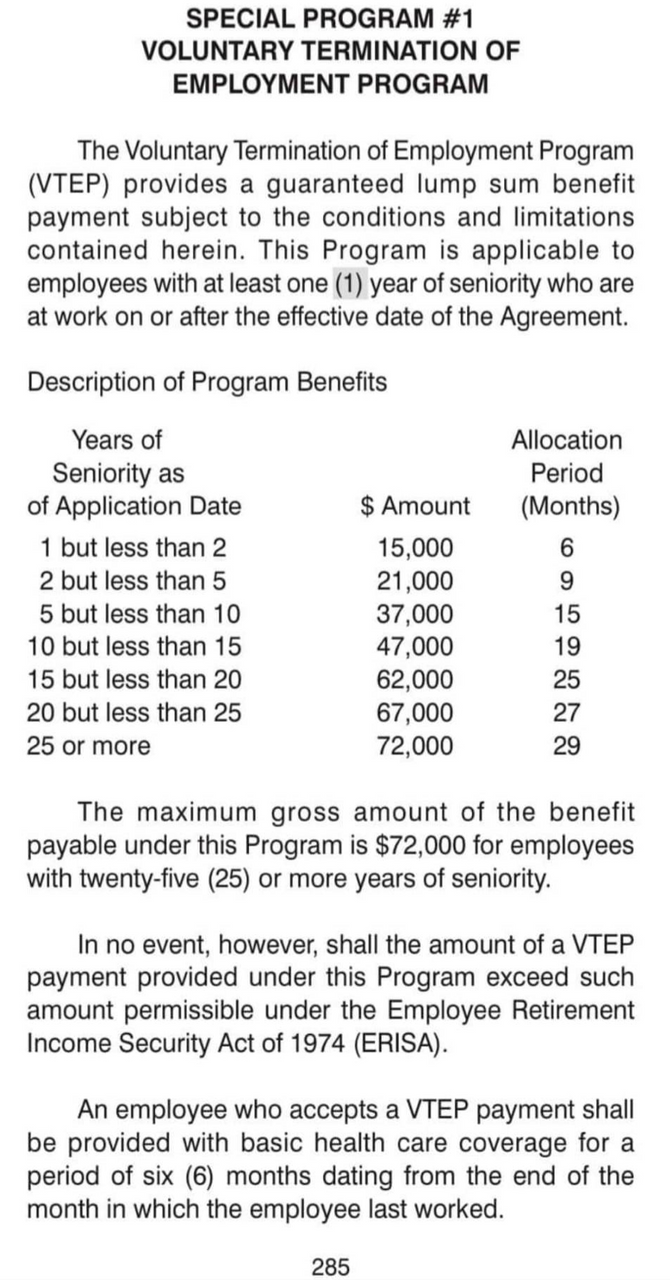 The insulting payouts range from $15,000 over six months for workers with 1-2 years of seniority, to $72,000 over 29 months for workers with 25 years or more seniority. A $50,000 “incentive retirement package” is also being offered to higher seniority workers who were hired before the 2007 agreement.