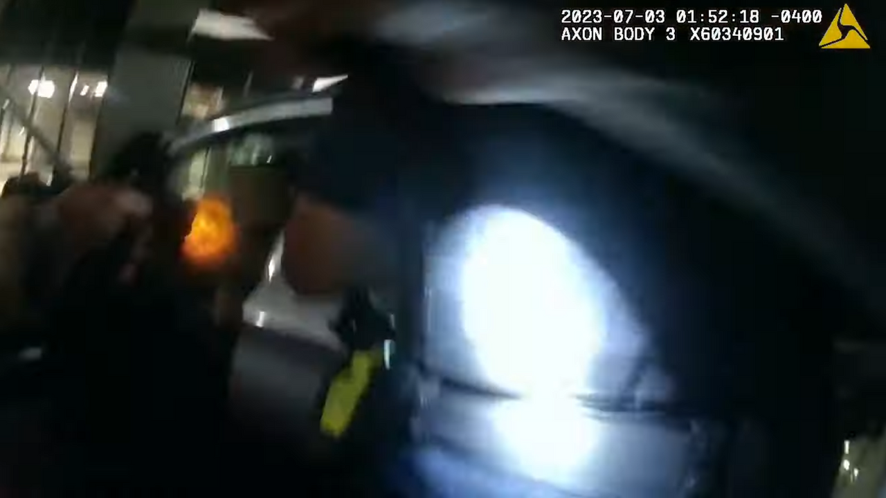 Body camera footage shows multiple cops riding bicycles in a well-lit area of downtown Orlando at approximately 1:50 a.m. on July 3. For reasons unknown, one of the bicycle cops approached Diaz’s parked car from the passenger side and shone his flashlight inside, while another cop, Velez, approached from the drivers side.