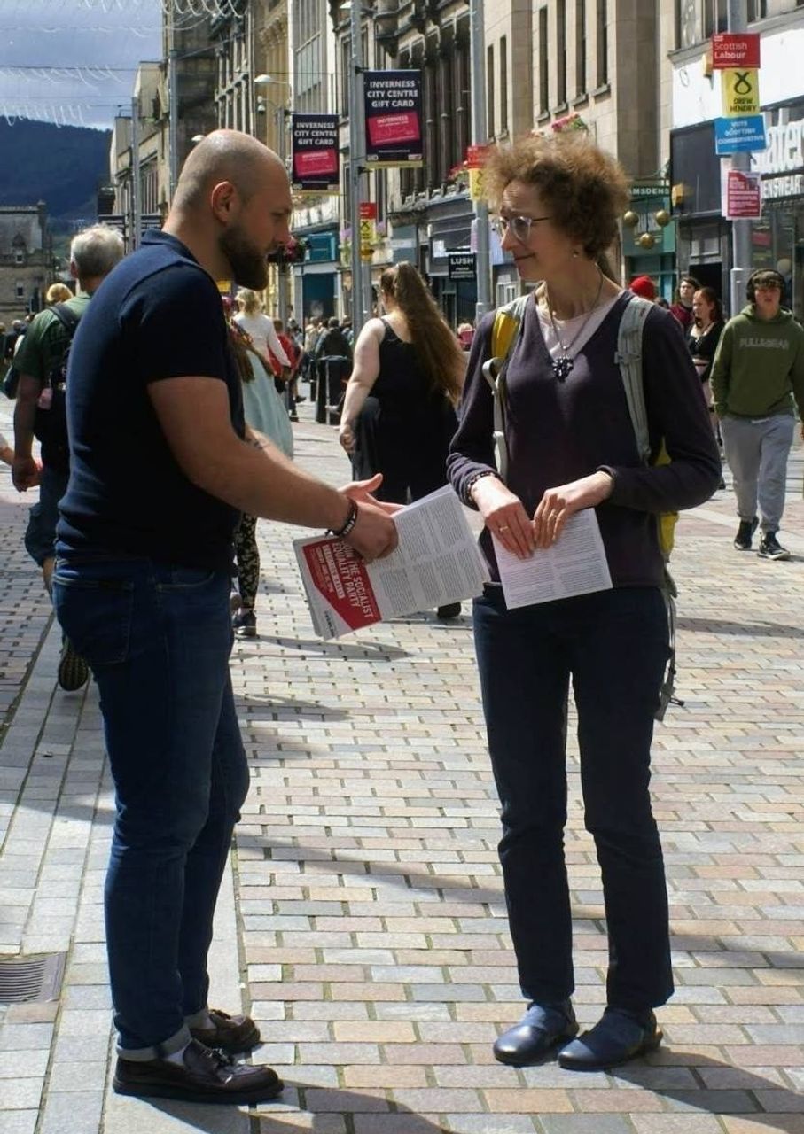 The campaign team also attracted a number of people from the around one thousand strong Highland Pride march held in Inverness June 22. One of those attending spoke with the SEP team over their concerns for democracy and agreed to read the SEP manifesto.