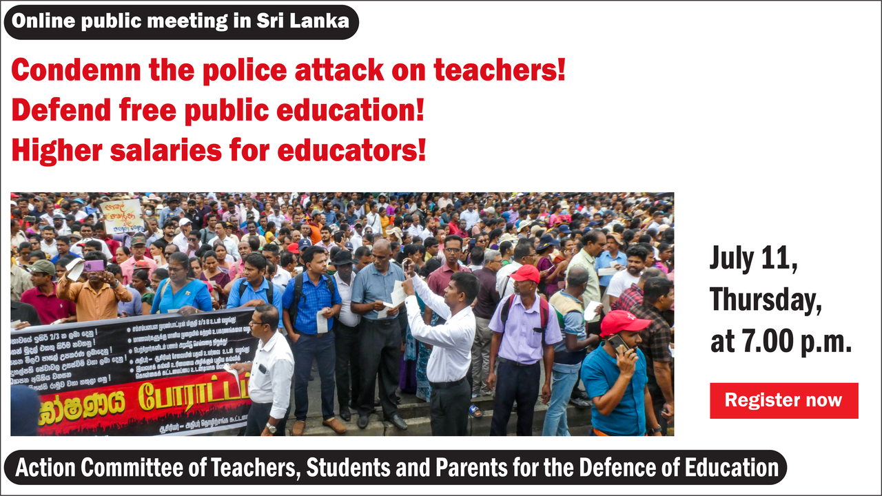 The Action Committee of Teachers, Students and Parents for the Defence of Education (ACTSP) in Sri Lanka will hold an online public meeting at 7 p.m. on July 11 entitled “Condemn the police attack on teachers! Defend free public education! Higher salaries for educators!”
