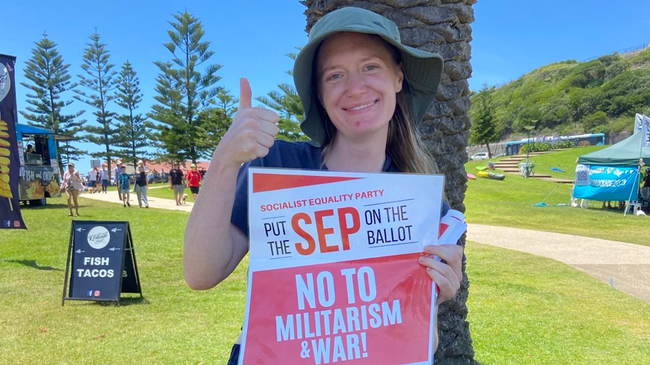 Members of the International Youth and Students for Social Equality (IYSSE) discussed this perspective with participants at the “protesteval.” The IYSSE raised the connections between the climate crisis and other manifestations of the capitalist breakdown, including the genocide and the US-led drive to war against Russia and China.