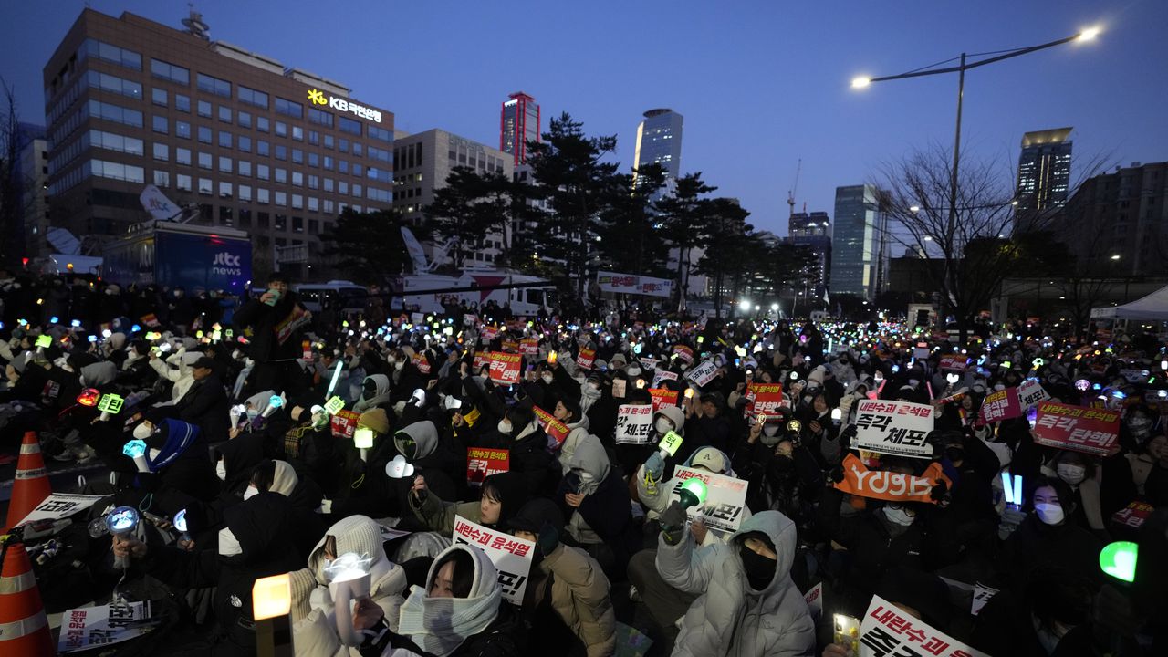 Rally demanding South Korean President Yoon Suk Yeol's impeachment outside the National Assembly in Seoul, December 8, 2024. [AP Photo/Ahn Young-joon]