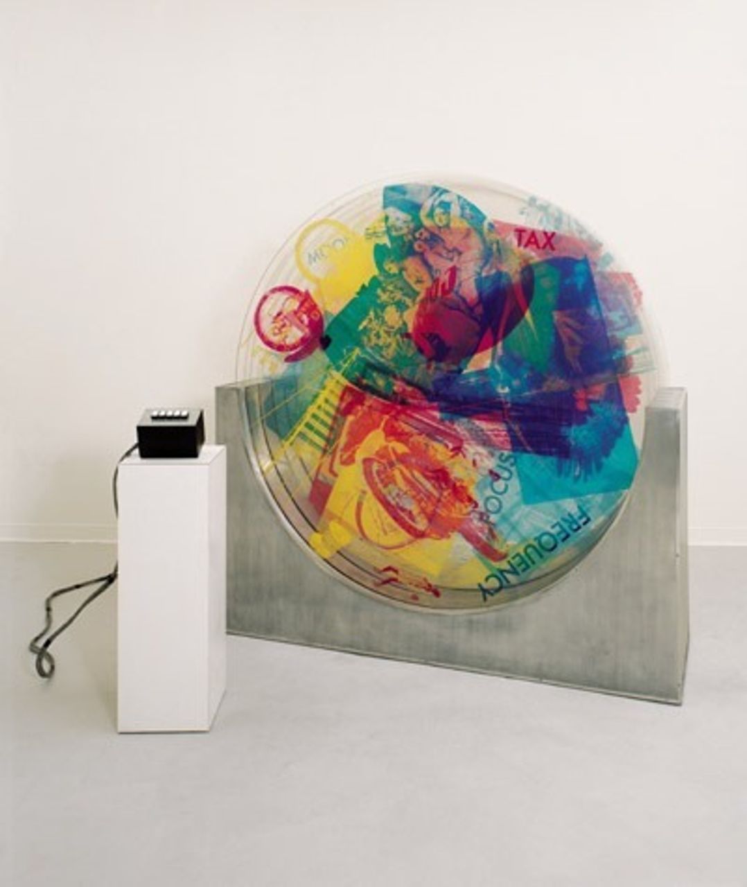 ”Revolver II,” 1967, silkscreen ink on five rotating Plexiglas discs in metal base with electric motors and control box