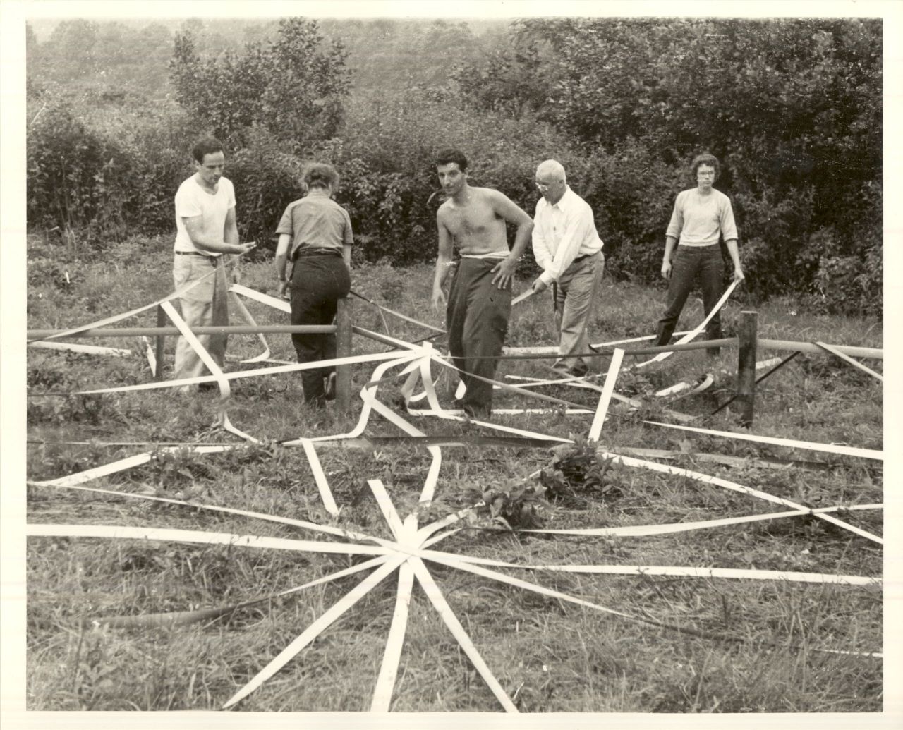 Buckminster Fuller and Black Mountain students assemble a geodesic dome, 1948