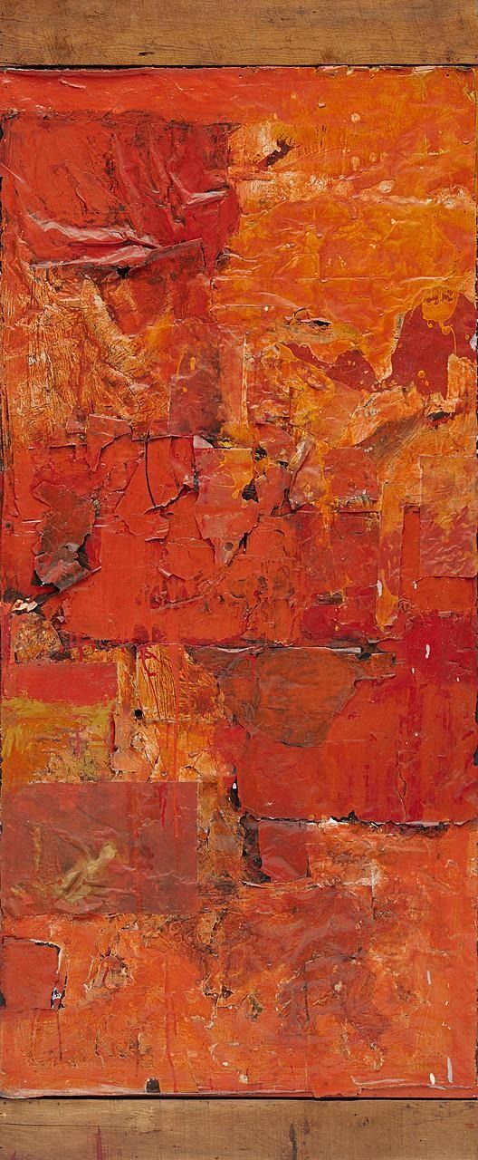 Rauschenberg, however, stuck scraps of fabric and newspaper onto the canvas before covering everything in red washes, splatters and impasto. Far from being uniform, the resulting surface buckles, sags and cracks. The various shades of red alternately suggest tomato sauce, ketchup and blood. Through his technique, Rauschenberg embraced contingency and “non-art” materials (even debris), thus rejecting ideas of purity, metaphysics and the “autonomy” of painting. Despite its strong sensory appeal, the painting implicitly deflates the social and spiritual ambitions of Malevich and the Abstract Expressionists. There is, to be frank, an aspect of trivialization, which was in its own way an accommodation to the cultural and political hardships.