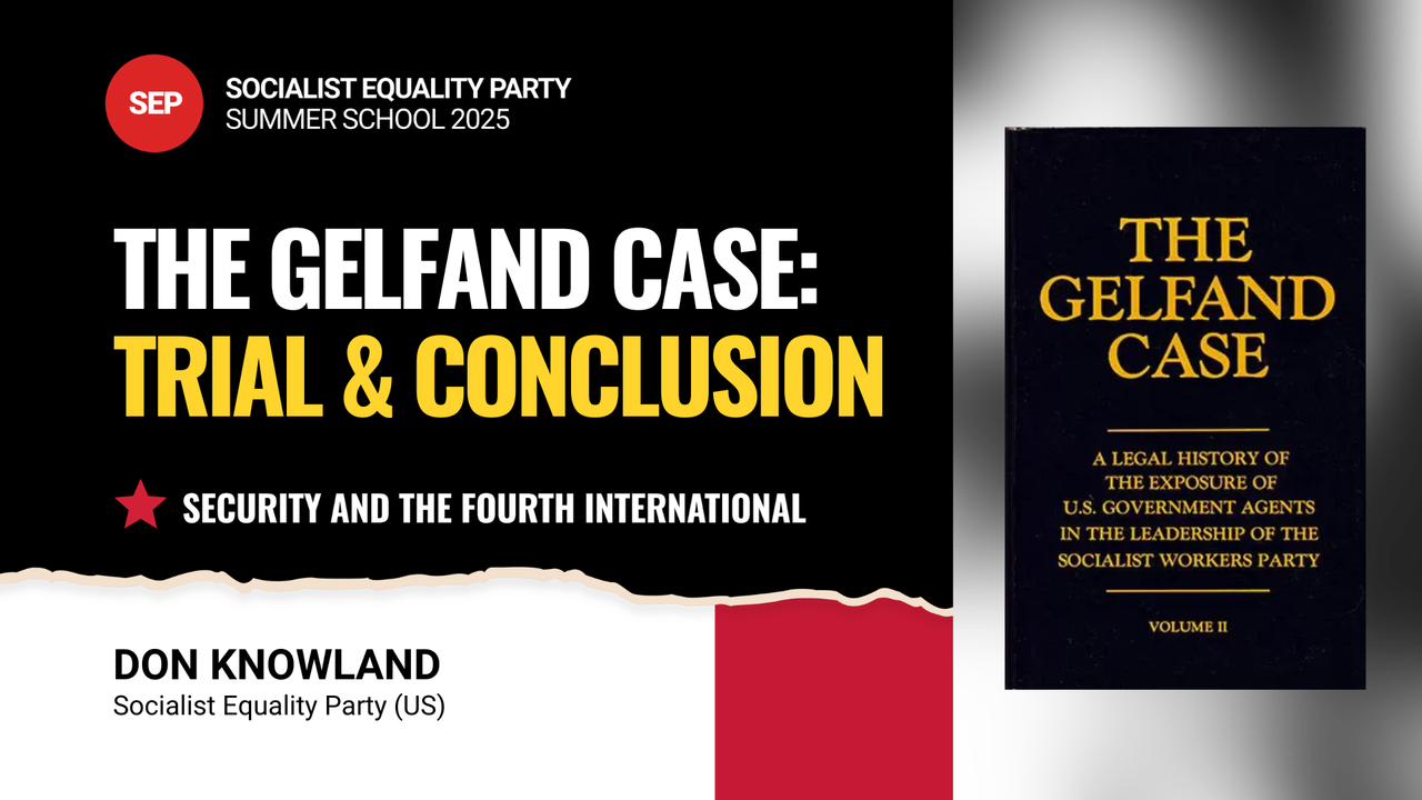 This lecture, delivered by Don Knowland, an attorney for Alan Gelfand, covers the trial of the Gelfand case in March of 1983 and the unsuccessful suit by the Socialist Workers Party to impose the costs of litigation on Gelfand and his lawyers. It was given to the 2025 Summer School of the Socialist Equality Party (US) on the history of the Security and the Fourth International investigation. Parts one and two of the lecture “The Gelfand Case: 1978-1982” are here and here. The lecture “The Gelfand Case: Depositions and the fight against summary judgement” is here.