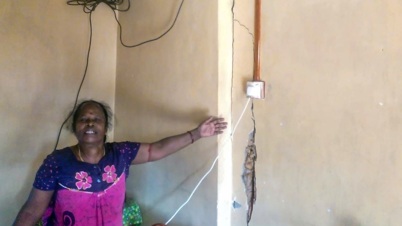 The wall of a houses in Stockholm Estate shows cracks due to the impact of Cyclone Ditwah, Sri Lanka