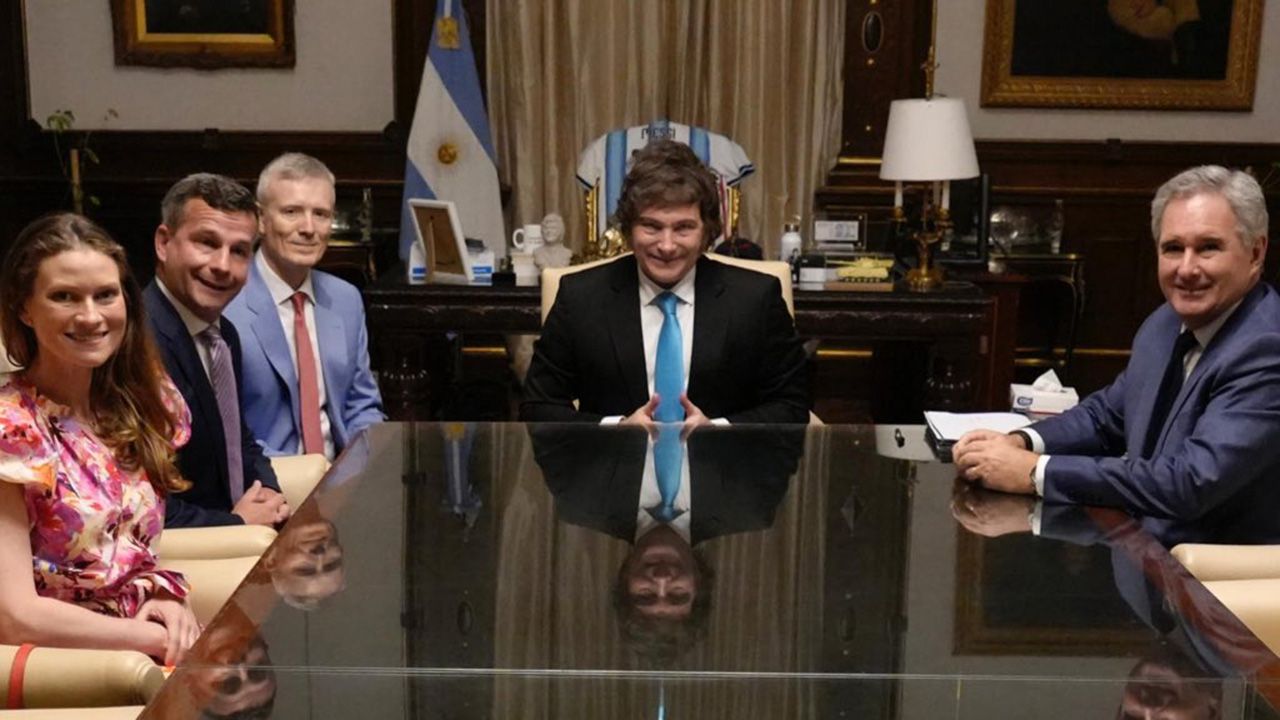 New Zealand Deputy PM David Seymour (second from left) meets with Argentine President Javier Milei (centre). [Photo: X/@dbseymour]