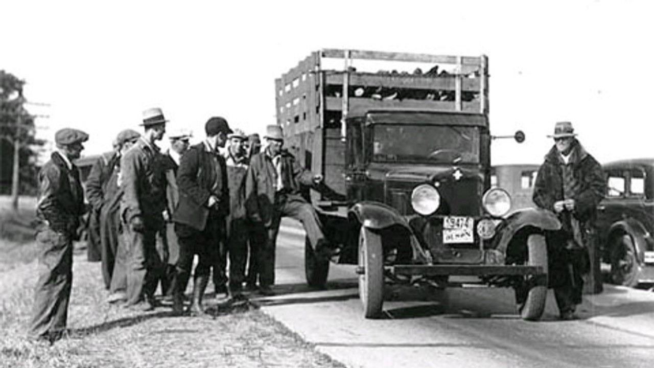 National Farm Holiday Strike; Farmers picket roads into the Twin Cities to bar the transfer of farm products, 1932.