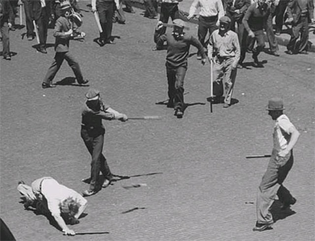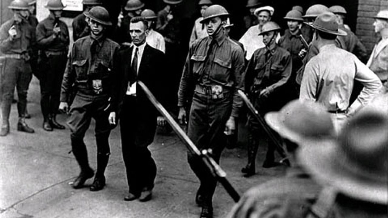 On the heels of the machinists’ strike came a Teamsters organizing drive involving 1,200 transport workers at 150 firms. The Alliance responded with a lockout, while private detectives beat and threatened workers with guns. The Teamsters Joint Council countered with a mass rally and a general strike of all transport workers. The city’s mayor, under orders from the Citizens Alliance, threw the police into the battle to fight and arrest workers.