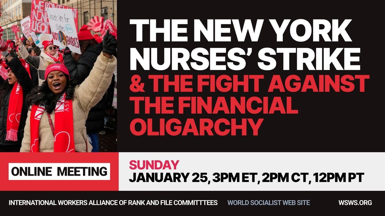 The World Socialist Web Site (WSWS) will host an online meeting in support of the 15,000 striking New York nurses at 3 p.m. EST on Sunday, January 25. Click here to register for the meeting.