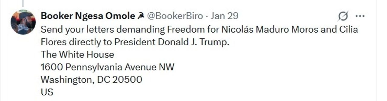 Omole has nothing to say to the emerging movement in the American working class, to which he is in reality profoundly hostile. His pathetic and impotent response, in line with his promotion of Stalin’s pact with Hitler, is to advocate a letter-writing campaign to make moral appeals to America’s would-be Führer. He tweeted: “Send your letters demanding Freedom for Nicolás Maduro Moros and Cilia Flores directly to President Donald J. Trump,” seeking to divert US workers away from class struggle and toward appeals to the Democratic Party, Congress and the imperialist state.
