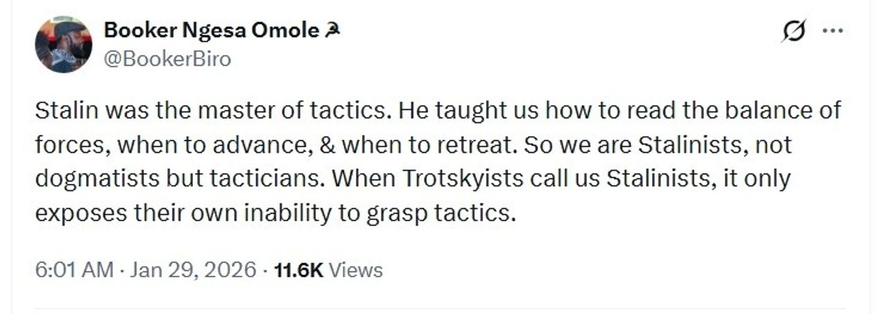 Omole’s reaction constitutes a devastating political self-indictment. Even as US workers enter into mounting struggles against the Trump administration, such as the mass strike in Minneapolis, Omole is doubling down on defence of Rodriguez’s collaboration with Trump. He tries to justify this by hailing Stalin and Stalin’s 1939 alliance with Nazi Germany in the Stalin-Hitler Pact as a model of political “realism” which he applauds the Bolivarian regime for following.