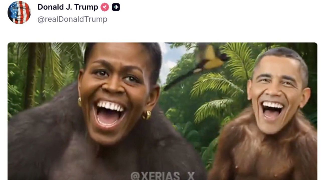 Late Thursday, President Donald Trump posted a 62‑second AI‑generated video clip on his Truth Social account that ends with a depiction of Barack and Michelle Obama as apes.