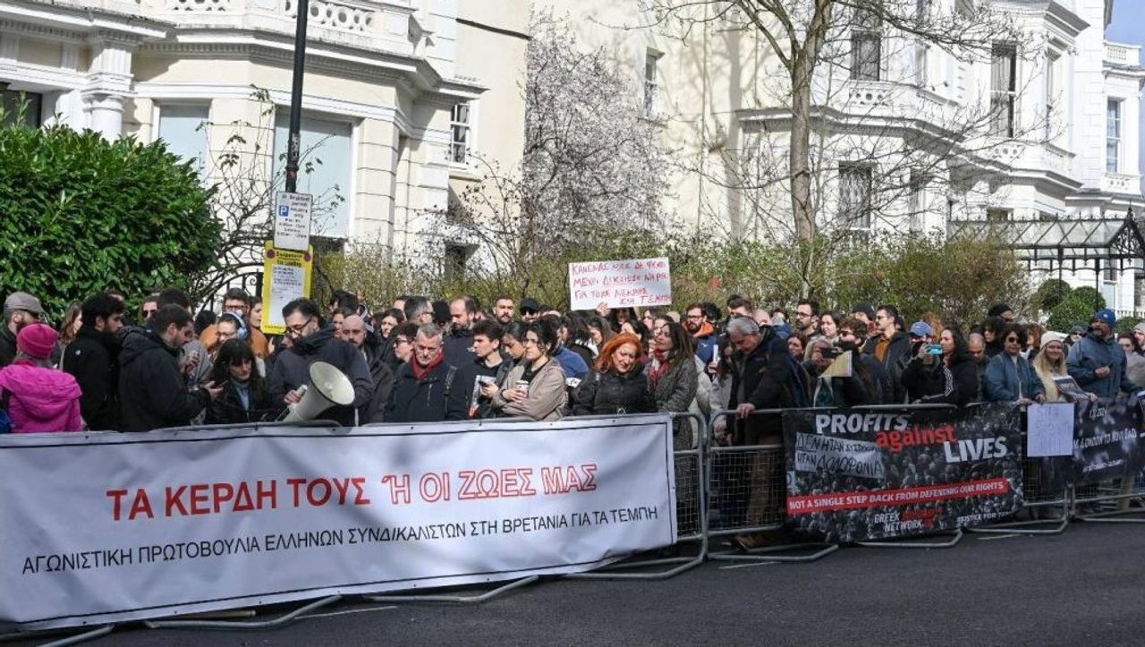 Around 300 people protested outside the Greek Embassy in Holland Park, London. Among their chants were: “They are talking about profit and losses - We are talking about human lives!” See video below.