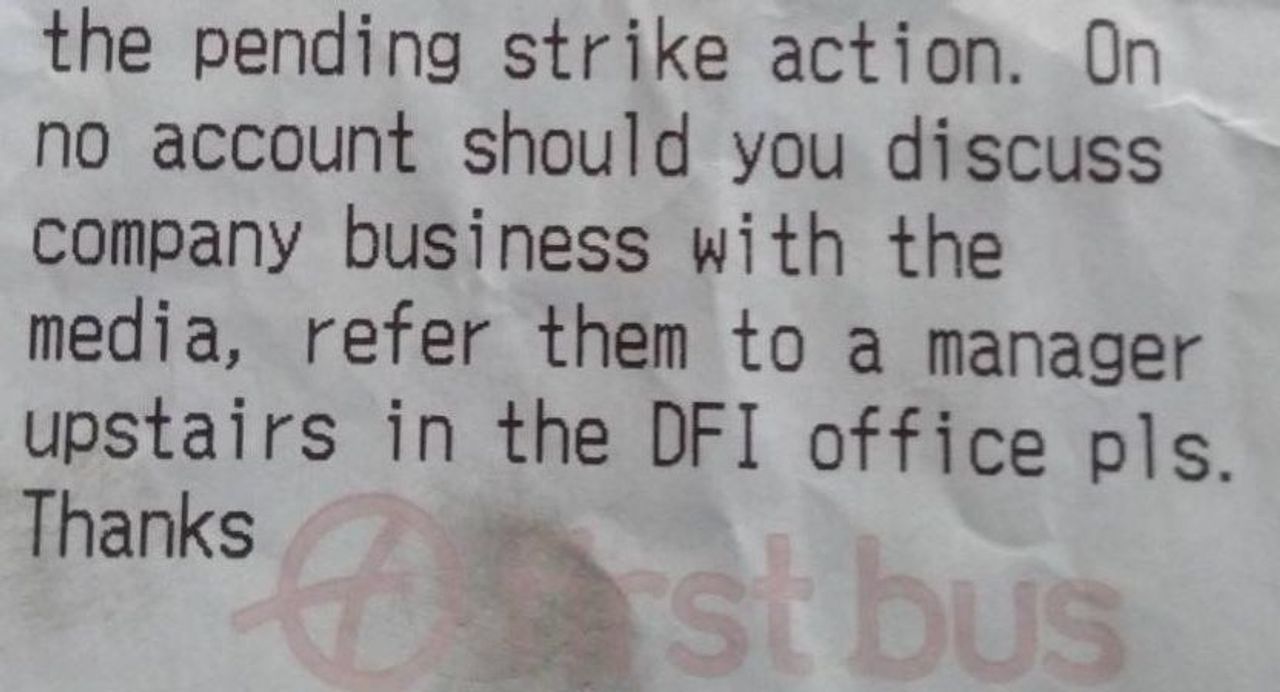 The company is doing all it can to silence discussion among drivers regarding the offer. WSWS reporters attempted to speak to drivers in the days leading up to the strike about the issues in the dispute. In response, First management sent all drivers a message commanding them: “On no account should you discuss company business with the media.”