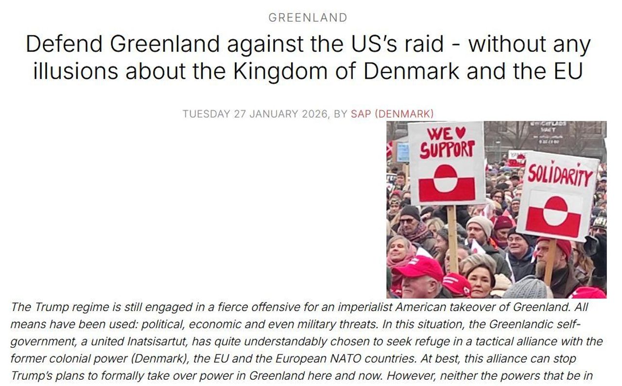 Entirely absent from the SAP statement is any suggestion that the working class has any role to play in resolving the fate of Greenland and, more broadly, the world capitalist crisis that finds expression in the breakdown of the Transatlantic alliance and escalation of imperialist war. It was written in January, as the beginnings of mass opposition to Trump’s drive to establish a dictatorship in the US were demonstrated by calls for a general strike in Minneapolis to oppose cold-blooded murders by his Immigration and Customs Enforcement (ICE) fascist thugs. Moreover, the escalation of the class struggle in Europe, illustrated by such recent events as the large protests and strikes against French President Macron’s agenda of austerity and war last September, or the multi-million-strong general strikes in Italy driven by opposition to the Gaza genocide and war, are nowhere to be found.