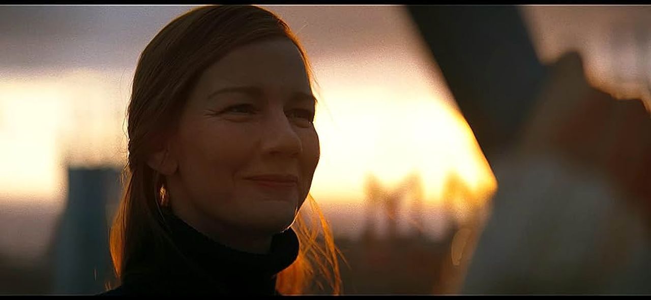The Hüller scene unfolds during a farewell karaoke session aboard an aircraft carrier when Stratt commandeers the microphone and, as heads turn, begins to sing with unexpected pathos. As the crew joins her in the haunting refrain—“Just stop your crying, it’s a sign of the times … We gotta get away from here”—she suddenly cuts the moment short, reverting to her “Iron Lady” persona and marching away. The sequence is genuinely moving, making the film’s parallels to our own world feel inescapable.