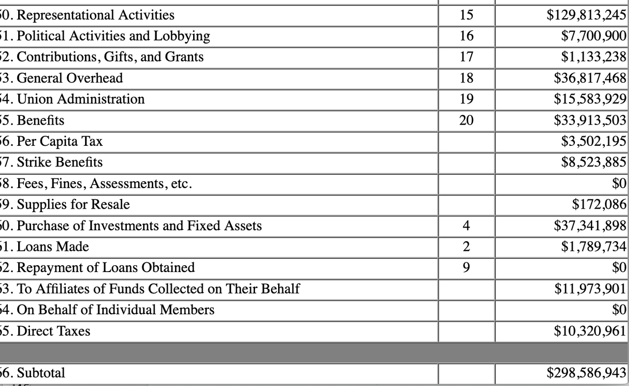 The salaries of the bloated UAW apparatus are by far the single largest expenditure, $107.1 million. The average compensation for the UAW’s staff of 950 apparatchiks rose to $112,000—well above the pay of the average shop-floor worker. This figure excludes local UAW officers, many of whom also earn six-figure salaries. Top officials earned significantly above the average: Fain received $276,378 in reported salary and expense allowances; Vice President Rich Boyer received $265,000; Vice President Mike Booth received $248,270; and Secretary-Treasurer Margaret Mock took home $250,633.