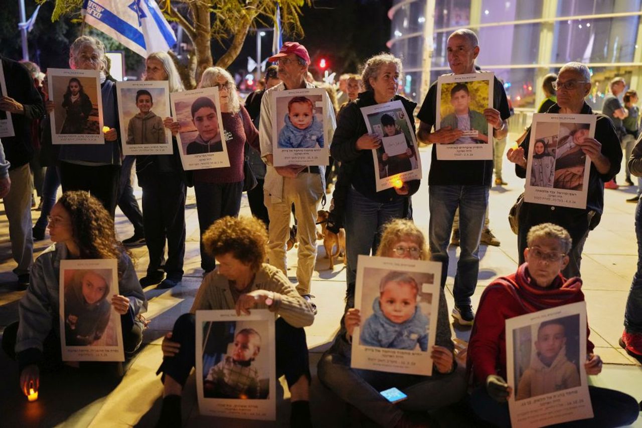 People hold photos of children killed across Israel, the Palestinian territories, Iran and Lebanon during a protest calling for the end of the war, in Tel Aviv, Israel, Saturday, April 11, 2026 [AP Photo/Maya Levin]
