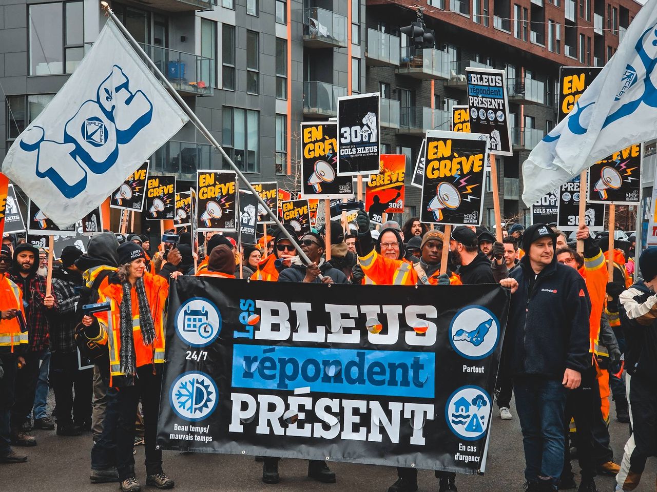 About 5,500 blue collar city workers in Montreal conducted a three-day work stoppage last week to further their struggle for a new contract. The workers are members of the Syndicat des cols bleus regroupés de Montréal which is affiliated to the Canadian Union of Public Employees (CUPE). Workers deemed as part of essential service requirements were kept on the job during the strike action.
