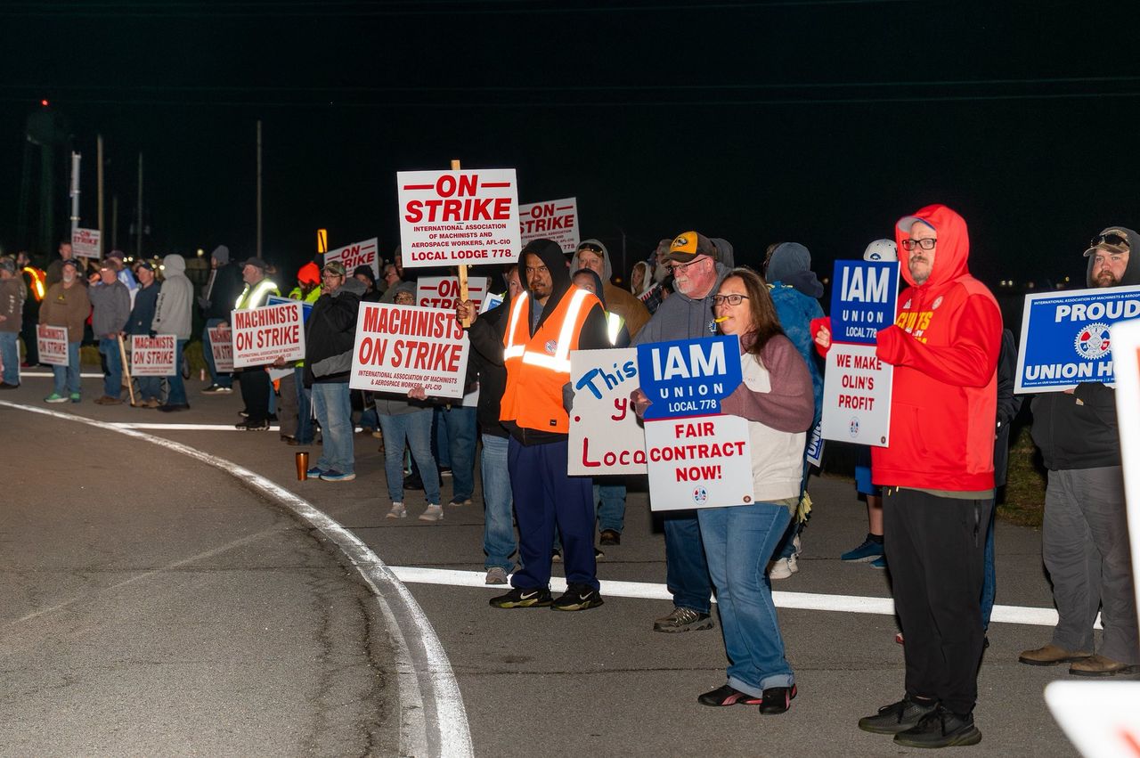 This dynamic was made explicitly clear at the union’s strike rally earlier this week by Scott Brown, the Directing Business Representative for IAM Local 778. Rather than outlining a strategy to expand the strike and shut down Olin’s scab operations, Brown essentially pleaded with management for a face-saving agreement to get war production back online: “Our members want to get back to work. We are ready to negotiate. But it takes two sides willing to find a fair, common ground.”