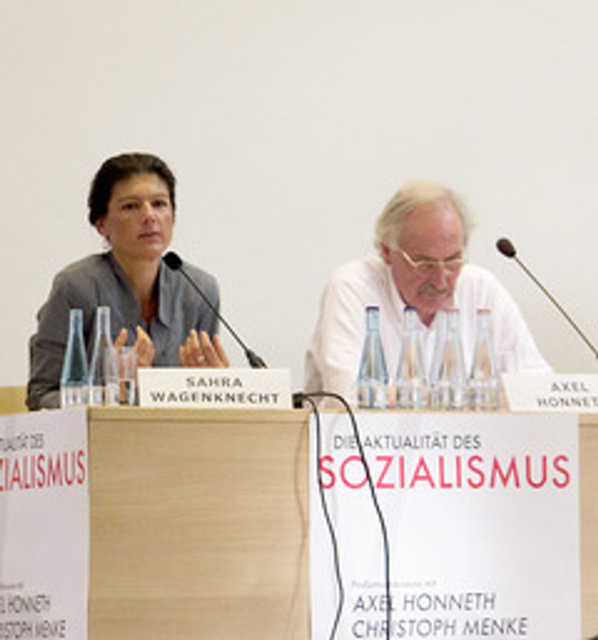Una reunión sobre "La importancia del socialismo hoy" se llevó a cabo en la Universidad Humboldt de Berlín el 5 de julio. En el podio estuvieron dos profesores de filosofía, Axel Honneth y Christoph Menke, y dos políticos, Gesine Schwan (Partido Socialdemócrata, SPD) y Sahra Wagenknecht (Partido de Izquierda).